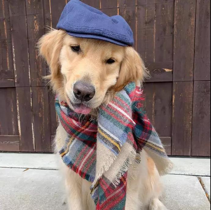 看狗子笑的這么開心,就知道肯定是一只被愛包圍的小乖乖,據(jù)說光不同的圍巾就上百條呢!